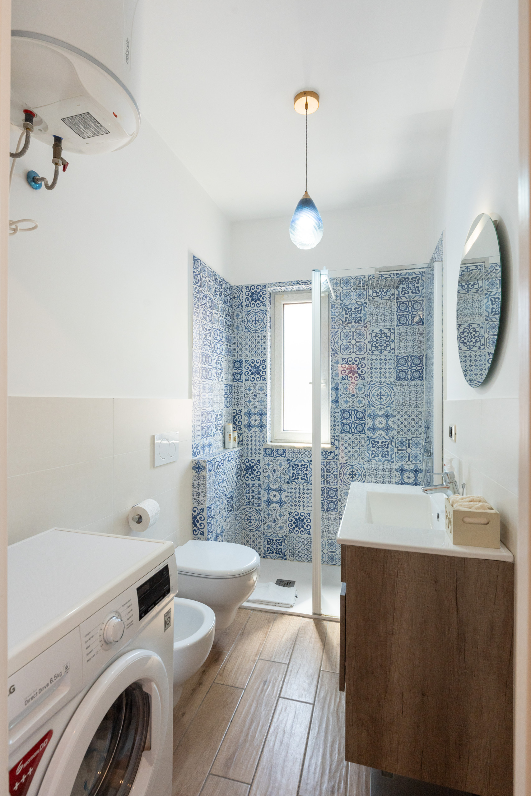 L'appartamento offre inoltre un bagno moderno e completamente attrezzato, completo di doccia, asciugamani freschi e articoli da toeletta in omaggio.
