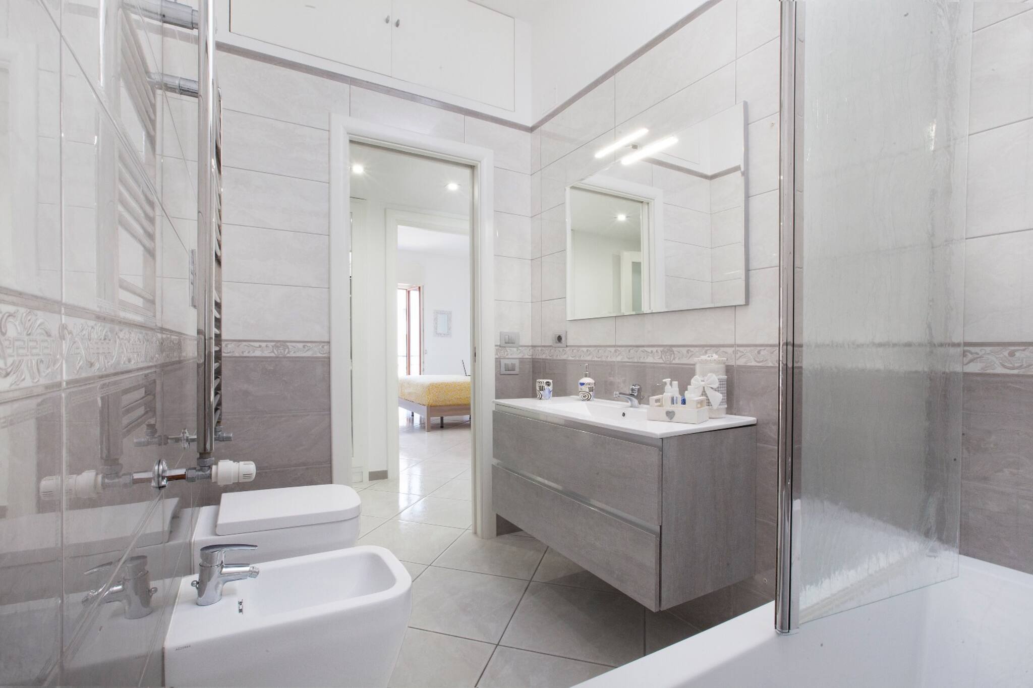 Non hai bisogno di un'auto, puoi arrivare facilmente in treno. L'appartamento si trova a circa 5 minuti a piedi dalla stazione. È facile anche se hai un'auto: c'è una convenzione con il parcheggio De Curtis che ti consente di parcheggiare tutta la giornata per 25€ (notti inclusi).