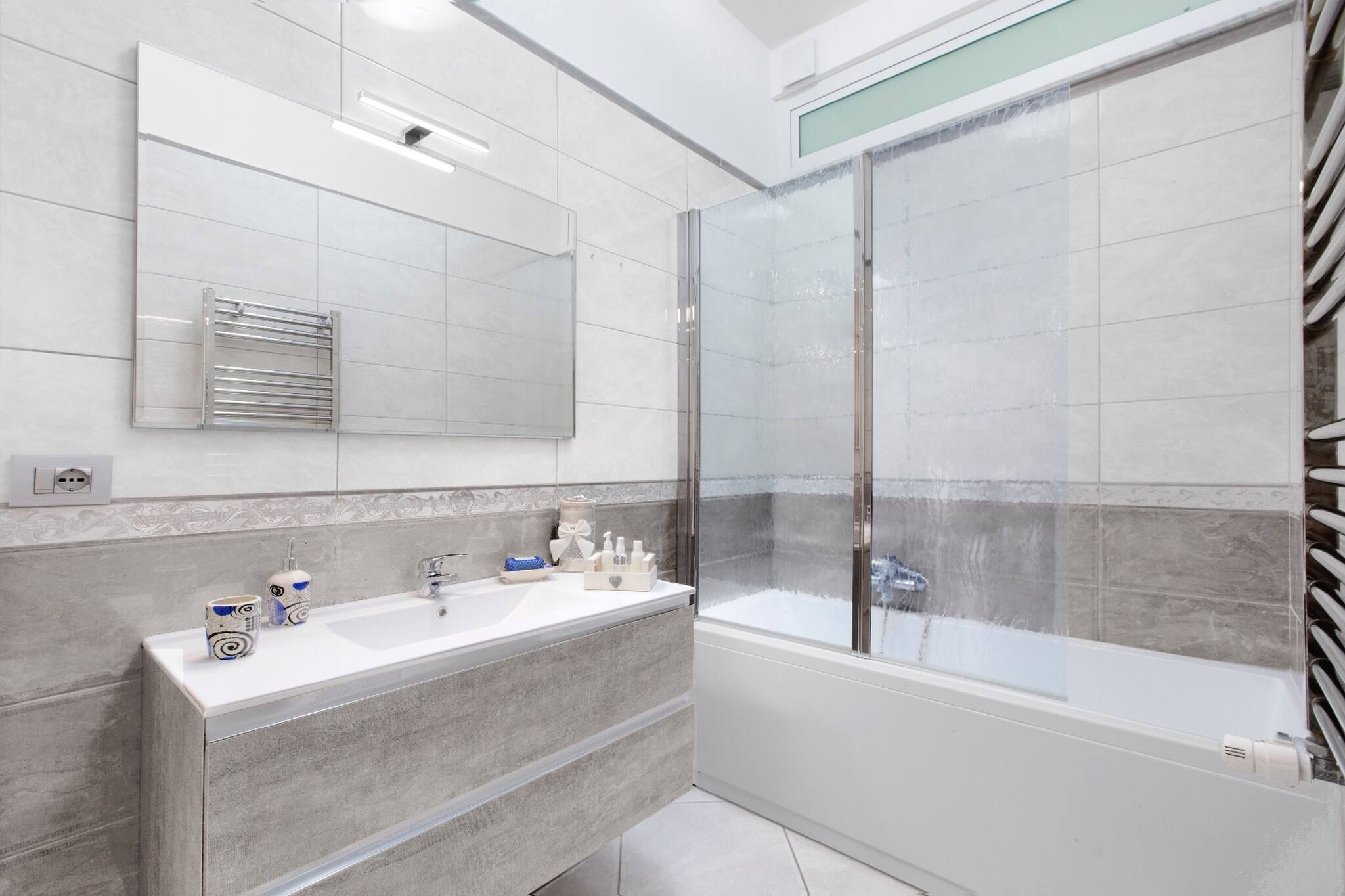 L'appartamento dispone di due nuovi bagni, due camere matrimoniali, una camera con letti singoli (che può diventare matrimoniale) e una cucina/soggiorno con un divano letto matrimoniale, se necessario.
