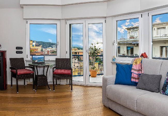 Terrazza panoramica che offre una vista ininterrotta sul mare cristallino del Mediterraneo, sulle iconiche scogliere di Sorrento e sui tetti pittoreschi della città