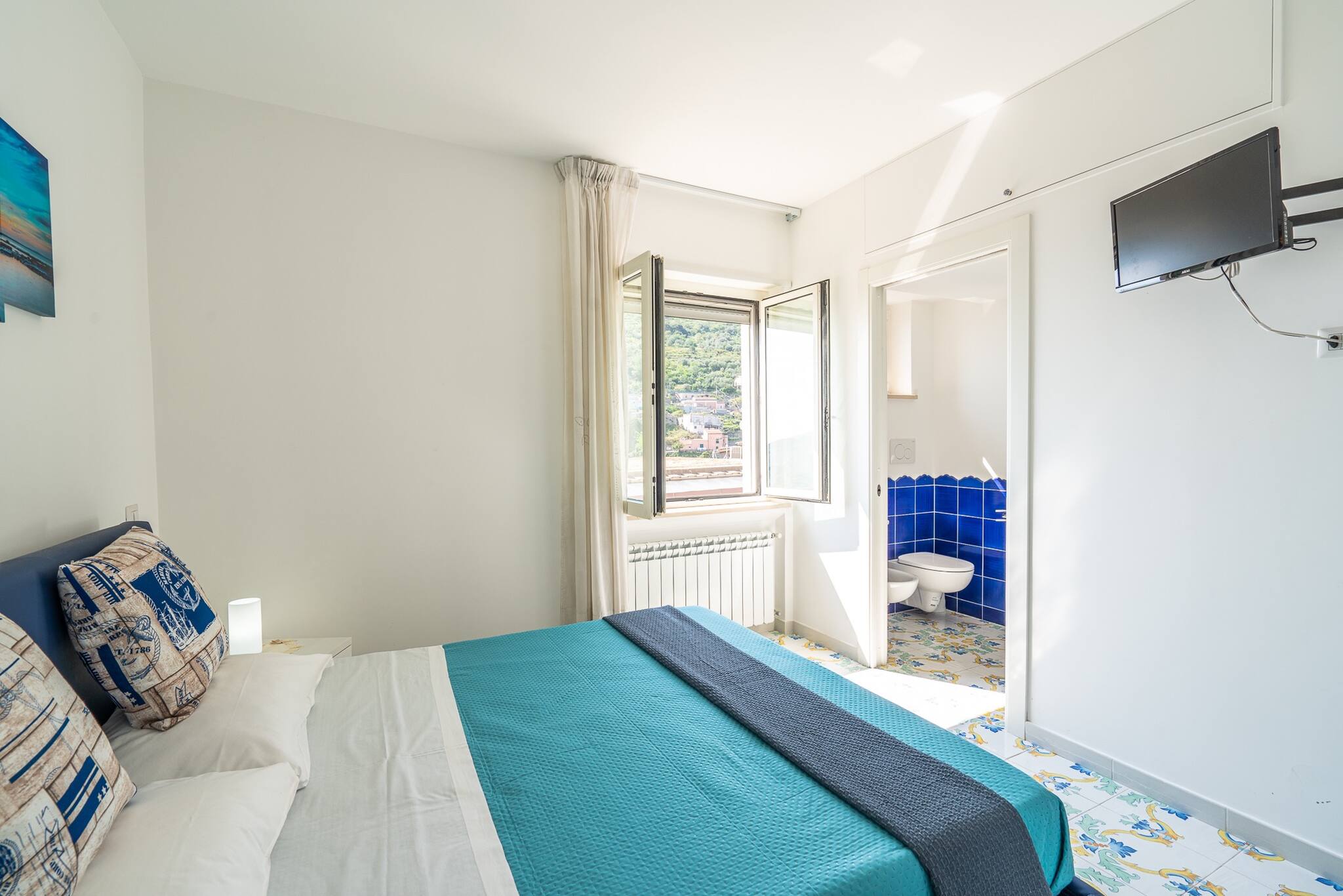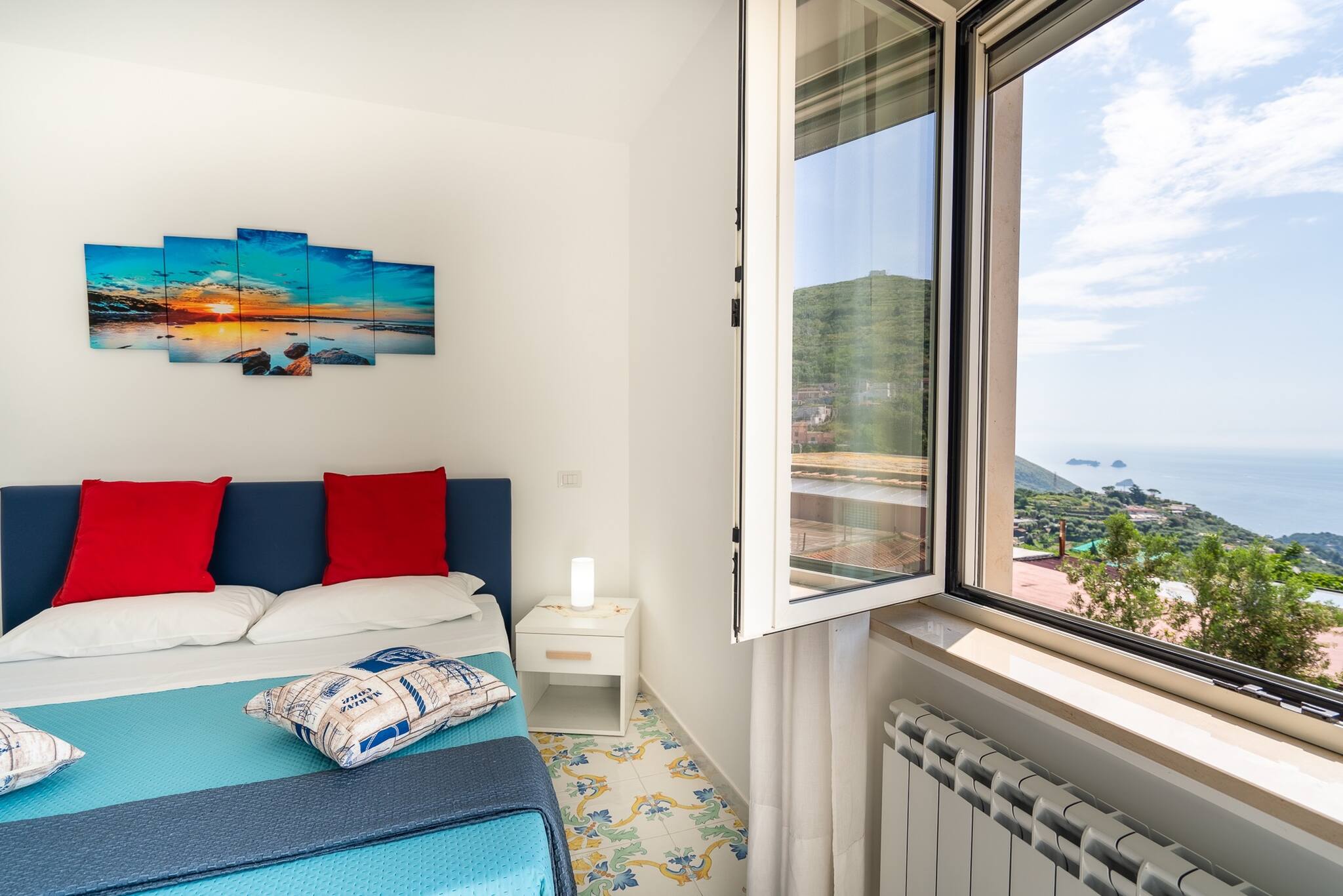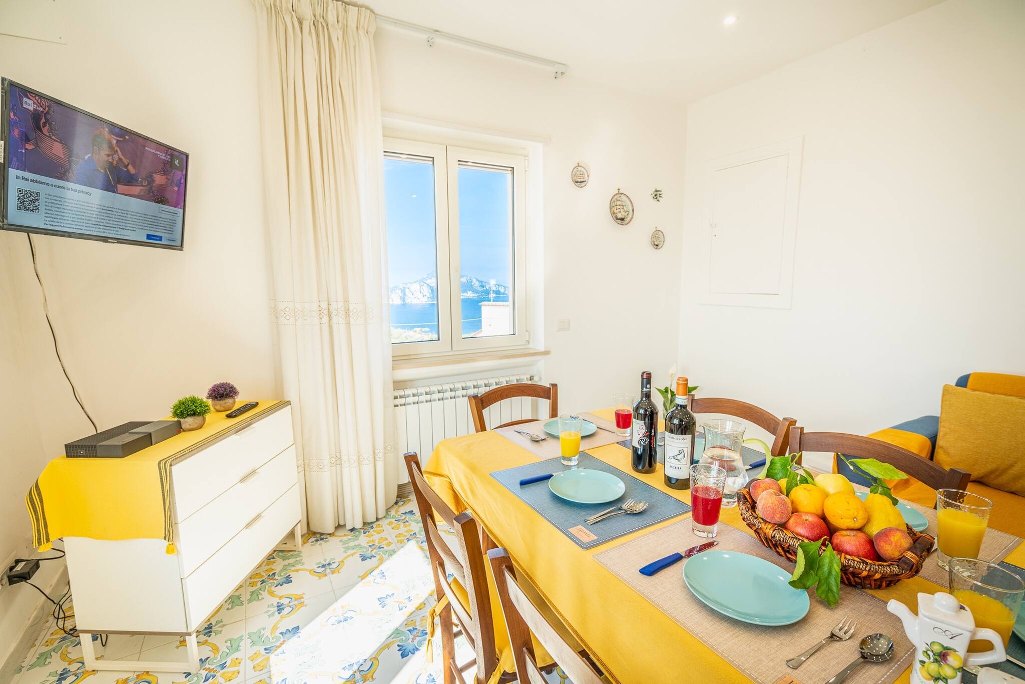 Blue Bell Residence è un appartamento luminoso e moderno, caratterizzato da un elegante stile country-chic con dettagli raffinati. Situato in una posizione strategica, offre una vista spettacolare sulle isole di Capri e Li Galli, regalando un'esperienza unica ai suoi ospiti.