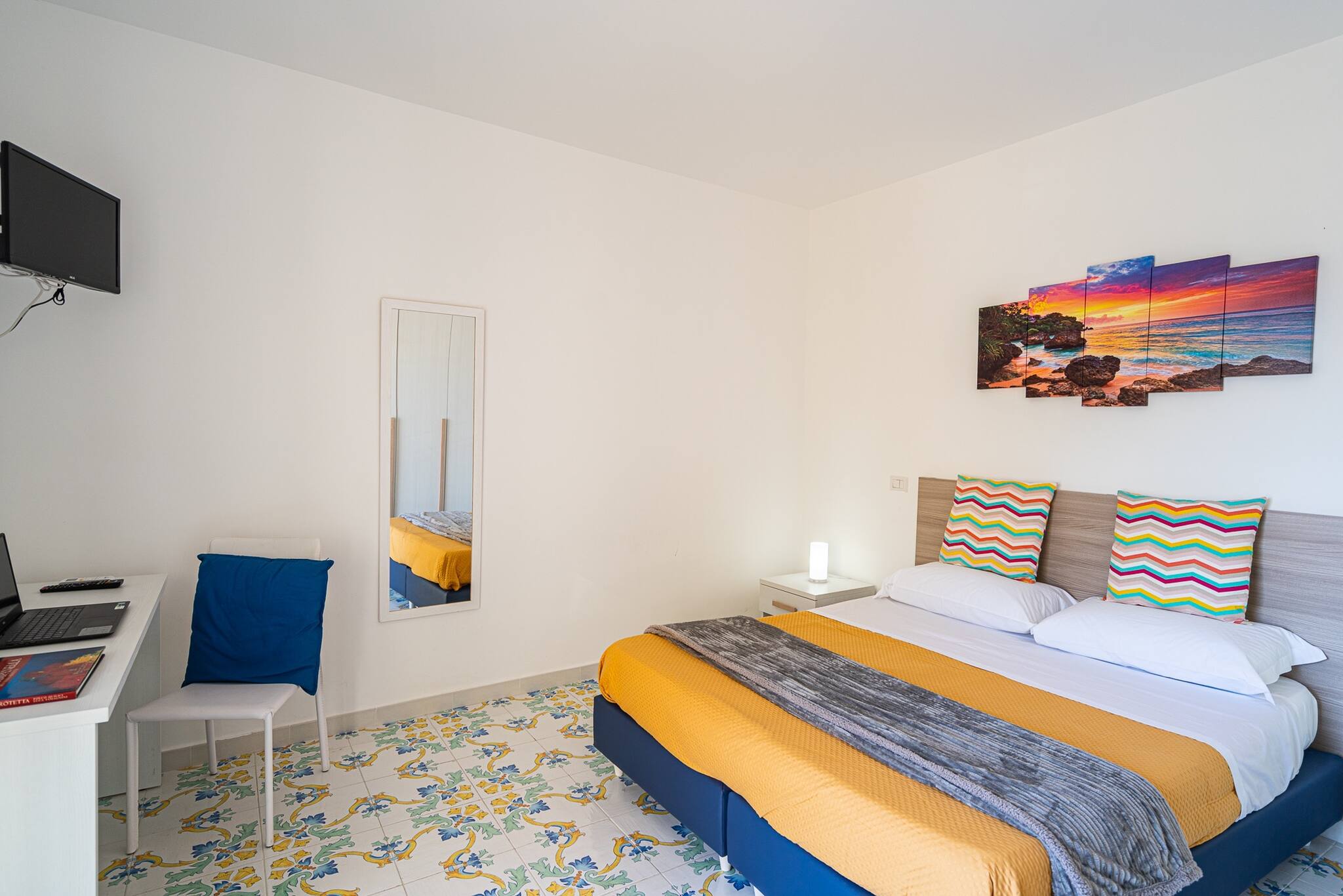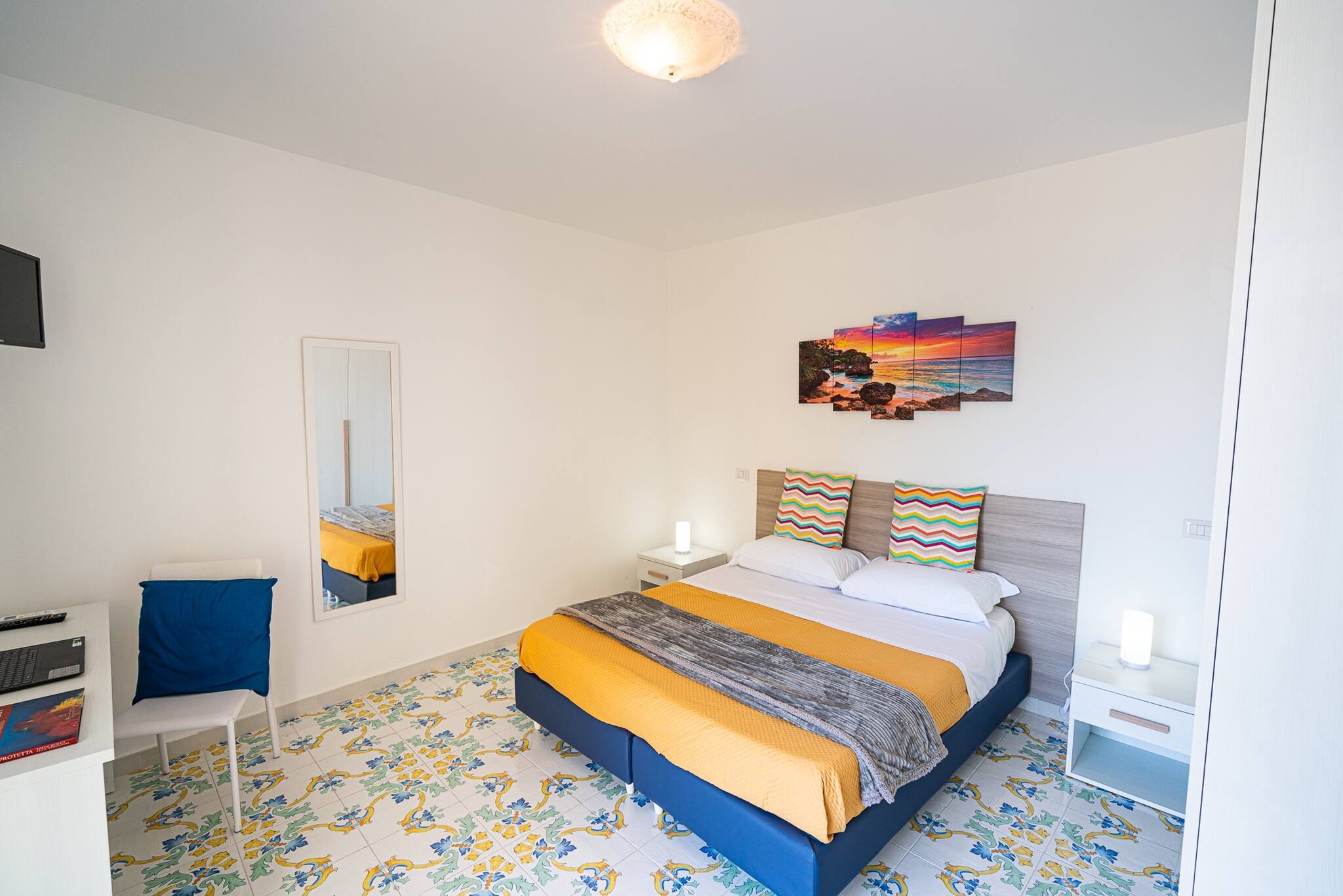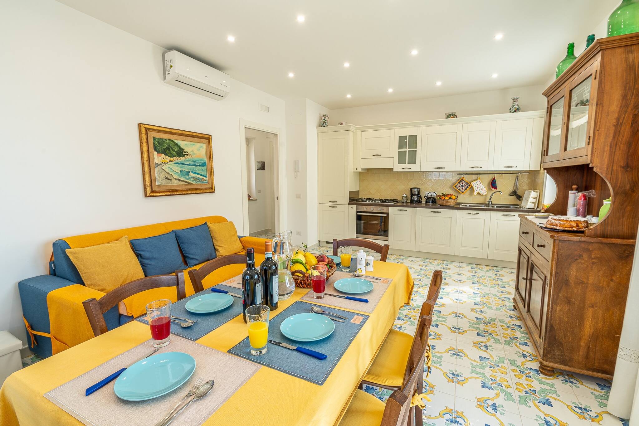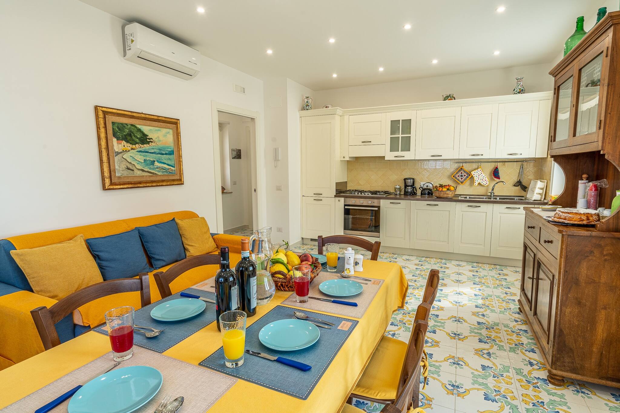Blue Bell Residence è un appartamento luminoso e moderno, caratterizzato da un elegante stile country-chic con dettagli raffinati. Situato in una posizione strategica, offre una vista spettacolare sulle isole di Capri e Li Galli, regalando un'esperienza unica ai suoi ospiti.
