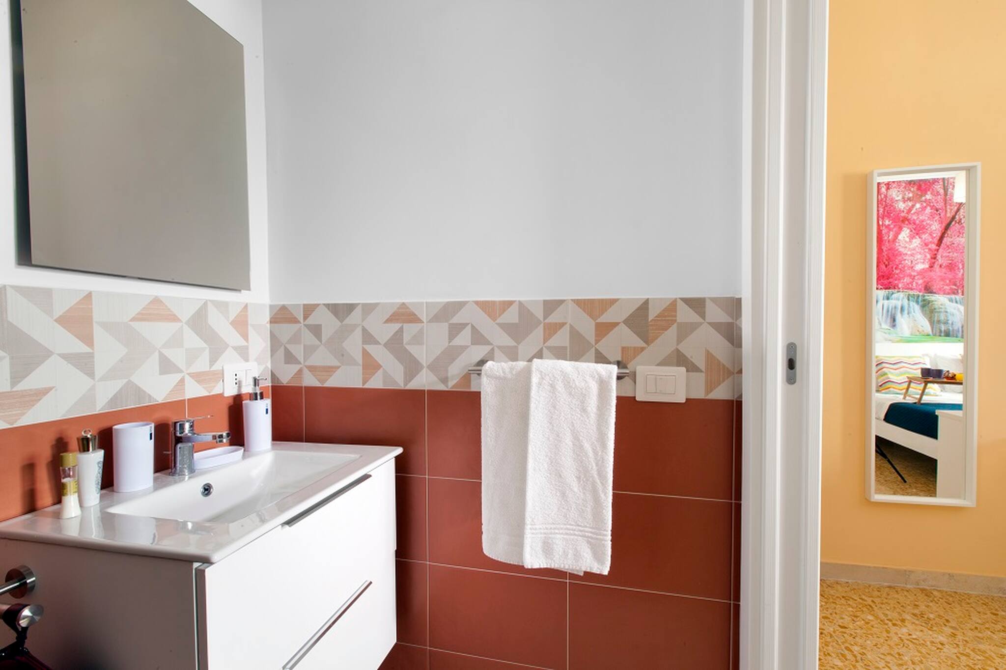 L'appartamento è situato al terzo piano di un edificio con ascensore. Composto da 3 camere con bagno privato e arredamento moderno, il B&B offre il massimo comfort per un soggiorno rilassante. Ogni camera è dotata di: