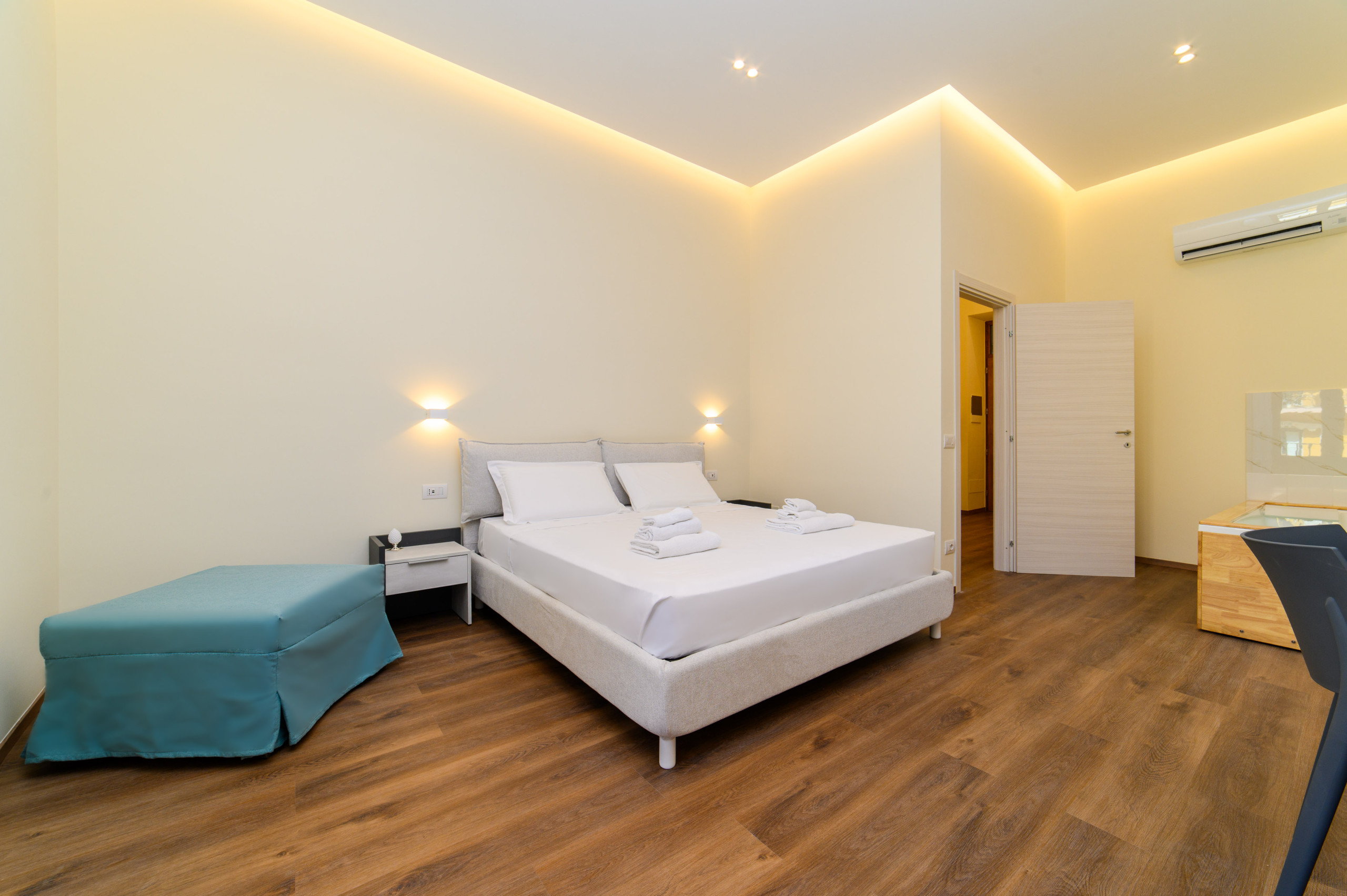 A spacious bedroom with a comfortable double bed and an additional single bed, perfect for couples, small families, or friends.