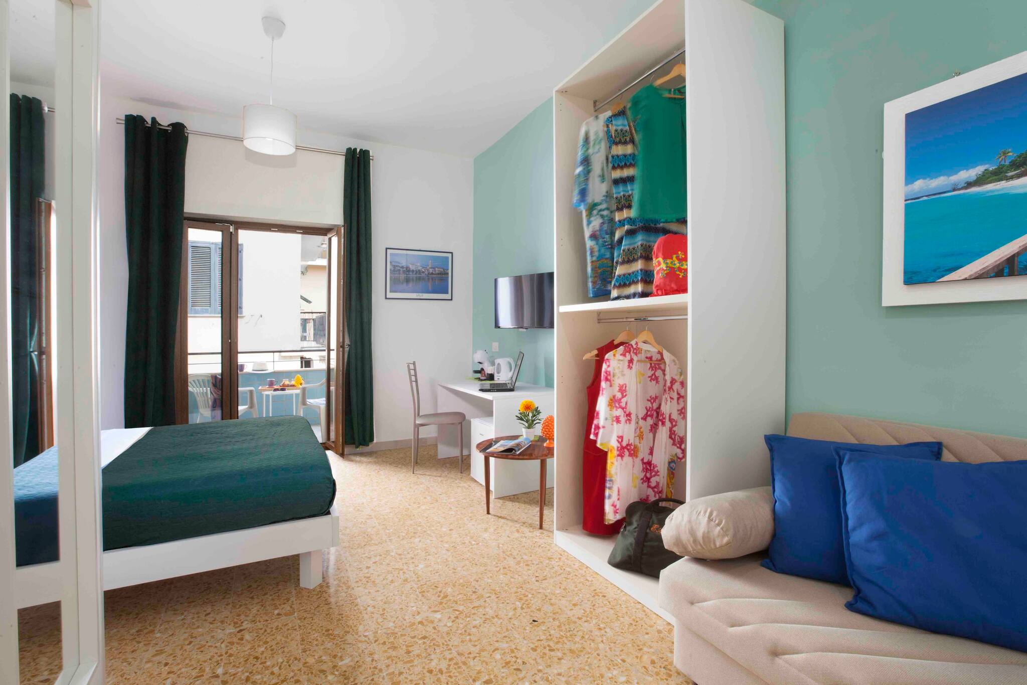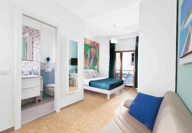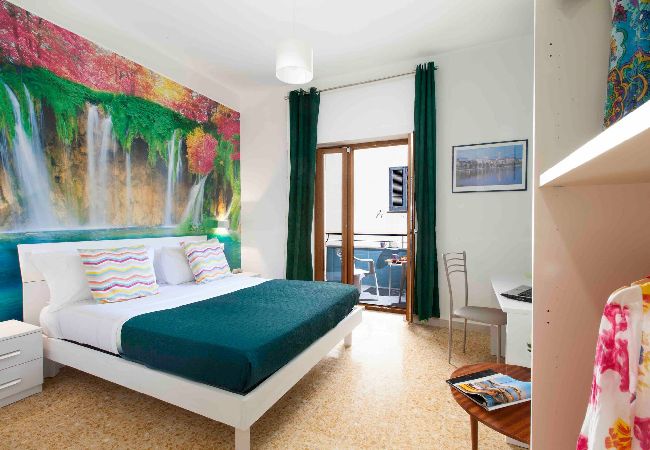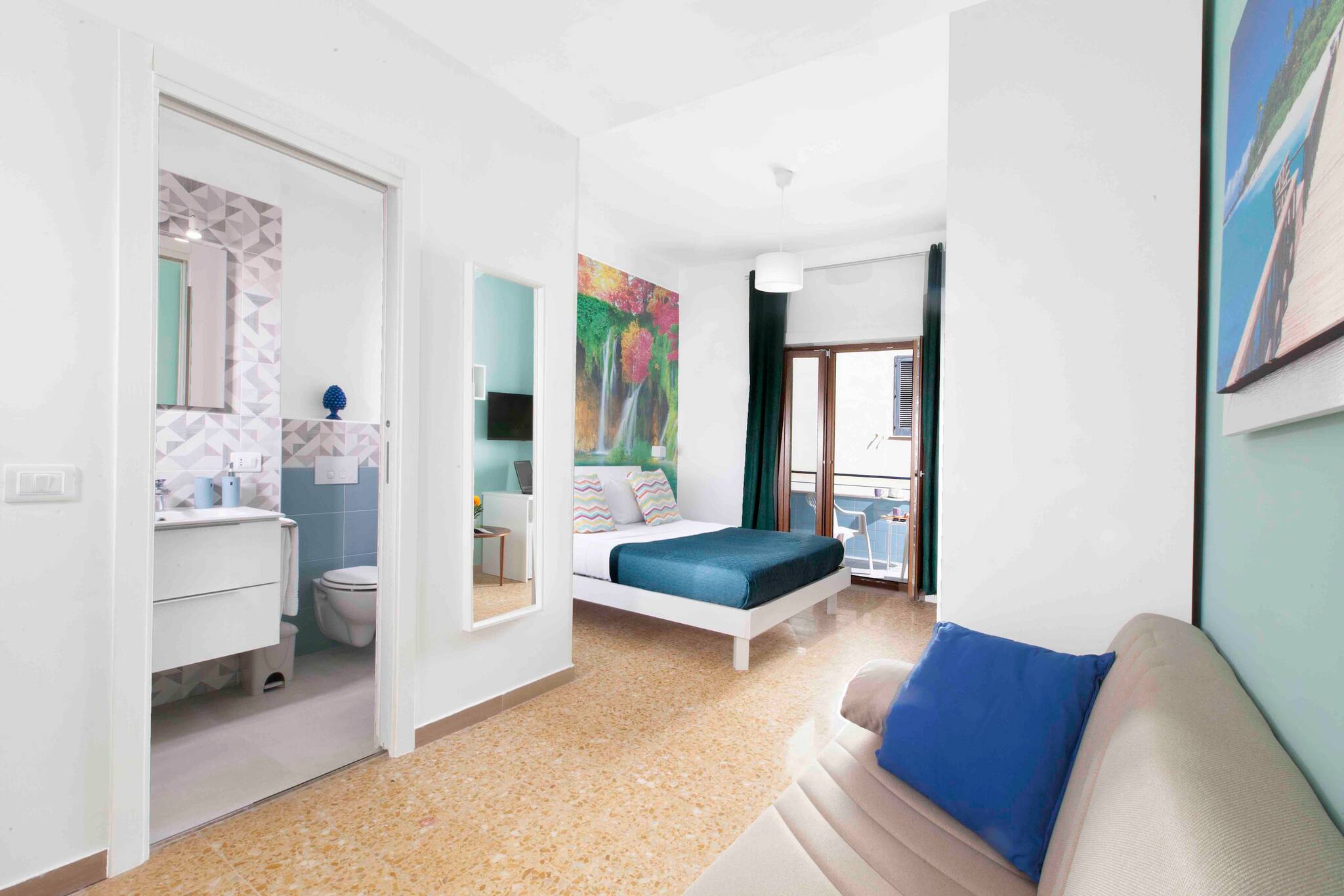 Just 200 meters from the central Piazza Tasso, this private room features a double bed, a sofa bed, a private bathroom, and a balcony.