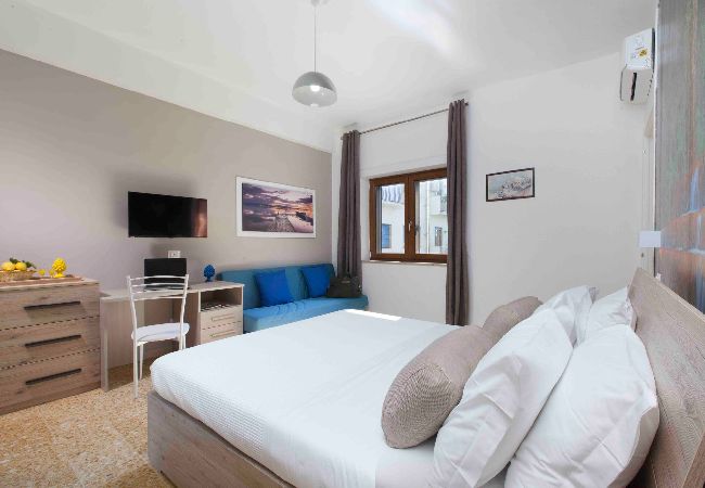 Just 200 meters from the central Piazza Tasso, this private room features a double bed, a sofa bed, a private bathroom, and a balcony.